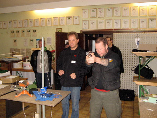 Die Aufgabe war recht simpel: mit einer gestellten CO2-Pistole nach einem Beep-Signal