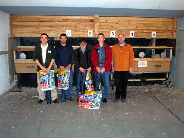 Peter Jastrow von der Firma Frankonia Jagd (ganz links) mit den Gewinnern des Rahmenwettkampfes.